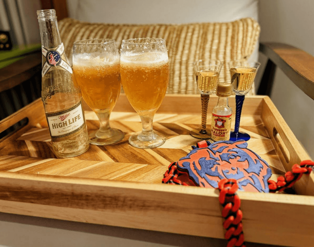 When the polar vortex hits Chicago, you hunker down. You stock up on essentials. You crack two Miller High Lifes and place them directly on the porch: nature’s refrigerator. Add two wet glasses to chill outside too. Pour two shots of Malört and let them sit at room temperature, absorbing the indoor air like a dare. Wait ten minutes. Let the cold do its work.